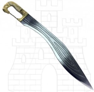 Preciosa falcata íbera realizada en la Edad del Hierro por uno de los mejores herreros del Oppidum de Llíria. Los materiales son 100% de nuestra tierra y la madera es procedente de los bosques de la Sierra Calderona.